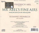 Contemporaneo e amico di Johann Christian Bach, Carl Friedrich Abel ottenne un grande successo come violista virtuoso e come organizzatore di concerti nell’elegante Londra della fine del XVIII secolo. Sebbene in quegli anni la viola da gamba fosse considerata uno strumento ormai inesorabilmente superato, le straordinarie esibizioni di Abel riuscirono a creare una sorta di revival di questo strumento sia tra i pubblico sia tra i musicisti. Le opere presentate su questo disco (sei delle quali in prima registrazione mondiale) rivelano una spiccata sensibilità, evocando con impressionante immediatezza l’universo tragico degli assoli di viola da gamba delle passioni di Johann Sebastian Bach. Il celebre critico inglese Charles Burney – vissuto negli stessi anni di Abel – commentò in termini molto lusinghieri la capacità di far ‘respirare’ la musica che il compositore tedesco sfoggiava nelle sue esecuzioni, dote che possiede in abbondanza anche la violista Susanne Heinrich, protagonista assoluta di questo incantevole disco.