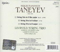 «Si tratta senza dubbio del miglior contrappuntista della Russia, non sono per nulla sicuro che in Occidente ci sia un musicista del suo talento». Con queste parole Ciaikovsky descrisse il suo protégé e amico Sergei Ivanovich Taneyev. Direttore musicale del Conservatorio di Mosca a partire dal 1885, Taneyev rappresenta una figura di grande importanza per la storia della musica russa, essendo stato un grande maestro del contrappunto, che alla scuola nazionale in voga in quegli anni preferì uno stile più trascendente e universale. Oltre alla loro bellezza intrinseca, i trii per archi di Taneyev dimostrano il suo altissimo magistero contrappuntistico e rappresentano i primi saggi compiuti in questo ambito da un compositore russo, per lo meno a questi livelli qualitativi. Il Leopold String Trio si è ormai affermato stabilmente tra le migliori formazioni dell’attuale panorama concertistico e nel 2005 è stato insignito del prestigioso Royal Philharmonic Society Chamber Ensemble Award. «Grazie alla straordinaria brillantezza e alla grande maturità del suo stile esecutivo, alla proficua collaborazione con alcuni solisti di altissimo livello e alla fantasiosa intraprendenza con cui realizza programmi, commissiona opere a compositori contemporanei e si propone all’estero, il Leopold String Trio si è rivelato uno dei più sinceri paladini di un repertorio troppo spesso negletto e una risorsa di grandissima importanza per la musica da camera».