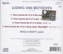 | Le sempre crescenti legioni di fan di Angela Hewitt sono stati finalmente accontentati: la Hyperion ha infatti pubblicato il terzo volume dell’integrale delle sonate per pianoforte di Beethoven, che fa seguito alla conclusione della splendida serie delle sonate per violoncello e pianoforte che la straordinaria pianista canadese ha realizzato con Daniel Müller-Schott. I primi due volumi sono stati esaltati dalla stampa specializzata di tutto il mondo per la loro «trasparenza sonora, intelligenza musicale e suprema eleganza […] che riescono a far coesistere armoniosamente la poesia alla passione», tre caratteristiche che sono presenti in larga misura anche in questa terza uscita. In programma comprende quattro sonate dallo stile contrastante, tra le quali spicca la Sonata op. 27 n. 2 Al chiaro di luna, che non richiede sicuramente alcuna presentazione. |