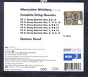 | A grande richiesta del pubblico internazionale, la CPO pubblica finalmente l’integrale dei 17 straordinari quartetti per archi di Mieczyslaw Weinberg in un cofanetto di sei dischi offerto a un prezzo estremamente conveniente nella superba interpretazione della formazione belga Quatuor Danel, definita da molti addetti ai lavori un vero e proprio prodigio musicale. L'ultimo volume di questa integrale è stato recensito in questo termini dal critico del sito klassik-heute.com: «Questo disco merita sicuramente dieci e lode sia per le bellissime opere che contiene sia per la splendida interpretazione di una formazione di altissimo livello». |