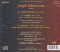 Nell’ultimo decennio la musica di Schwantner è stato eseguita in ogni parte del mondo, venendo accostata ai migliori lavori di Berg, Crumb, Messiaen e Debussy; in ogni caso il suo stile innovativo viene giudicato molto accessibile e gradevole grazie alla sua carica emozionale e alla sua struttura, che ricorda da vicino quella delle colonne sonore. A Sudden Rainbow è un suggestivo lavoro che vede protagonista il pianoforte e la celesta amplificati, accompagnati da un’orchestra in cui si mettono in grande evidenza gli strumenti a percussione. Composta per Anne Akiko Meyers, Angelfire esalta al massimo grado tutte le possibilità espressive del violino. Anche in questo caso Schwantner prevede che il violino venga amplificato in modo da potere competere sul piano dinamico con una grande orchestra. Commissionato dalla Dallas Symphony Orchestra, September Canticle è un commosso omaggio per le vittime degli attentati terroristici dell’11 settembre. La tesa drammaticità di quest’opera in un solo movimento è basata su una incisiva combinazione di toni minacciosi, una scrittura pervasa da un cromatismo spezzato e da una melodia struggente. Una vera e propria scoperta, che trova nella Dallas Symphony Orchestra e in Andrew Litton gli interpreti ideali.