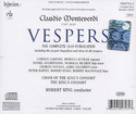 Nel 1610, quando ancora ricopriva il ruolo di maestro di cappella a Mantova, Claudio Monteverdi diede alle stampe quella che in seguito sarebbe stata considerata la più grande raccolta di musica sacra della storia. Il cuore di questa straordinaria pubblicazione è costituita dal Vespro, un’opera di ampio respiro strutturata in una sequenza di movimenti a voce sola dal carattere spiccatamente virtuosistico e da cori dalla scrittura inappuntabile che poteva essere adattata a qualsiasi ricorrenza, a seconda delle necessità e delle forze strumentali e vocali disponibili. La versione proposta da Robert King ci offre la possibilità di apprezzare quest’opera in tutto il suo splendore, con l’aggiunta del Magnificat ridotto e della Missa In illo tempore, una versione della messa senza la quale nessuna pubblicazione sacra secentesca poteva dirsi realmente completa. In questa straordinaria edizione del capolavoro monteverdiano Robert King è affiancato da solisti di primissimo piano e da un King’s Consort in forma smagliante, portando a termine un progetto ambiziosissimo, reso possibile dalla generosità delle centinaia di persone che con le loro offerte hanno consentito all’etichetta inglese di fare fronte alle spese legali sostenute lo scorso anno. Questa nuova registrazione è disponibile sia nel formato CD standard sia in quello SACD multicanale.