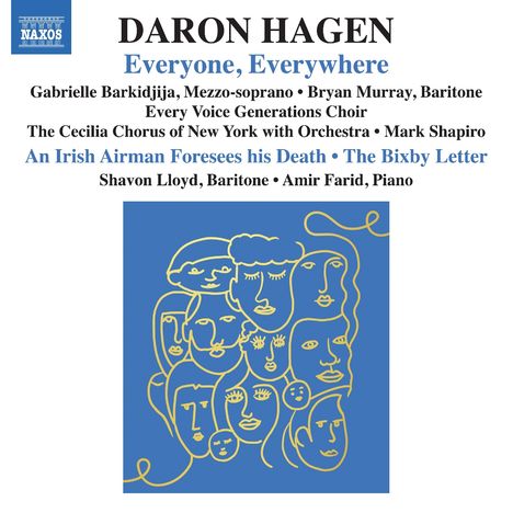 Daron Hagen è un compositore pluripremiato che da sempre si impegna per una musica emotivamente accessibile e profonda. "Everyone, Everywhere" è un'emozionante cantata composta in occasione del 75° anniversario della Dichiarazione universale dei diritti umani. Utilizzando una varietà di citazioni testuali (dalla Dichiarazione, ma anche da W. B. Yeats e Abraham Lincoln), ripercorre i singoli articoli della Dichiarazione. Inizia con una fanfara ottimista e termina quasi con amore in un commovente appello per una maggiore giustizia e pace. L'album include anche le canzoni "An Irish Airman Foresees his Death" e "The Bixby Letter". Mark Shapiro dirige il Coro Every Voice Generations e il Coro Cecilia di New York con orchestra. Il mezzosoprano Gabrielle Barkidjija e il baritono Bryan Murray sono i solisti della cantata, il baritono Shavon Lloyd canta le due canzoni, accompagnato al pianoforte da Amir Farid.